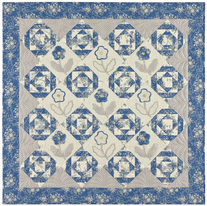 ![]() Blooming Silhouettes 54" x 54" $9.50 #162 A subdued color palette puts the focus on the elegant design of this pattern. Pieced blocks are enhanced with flowers and floral silhouettes. Add sparkle to this classy quilt with contrasting flower centers. |