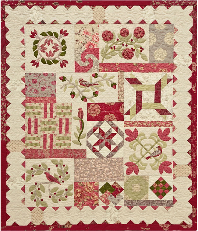 Appliqué designs blend gracefully with pieced and alternate blocks to create an updated quilt with traditional roots. Influenced by time-honored Baltimore patterns, this quilt is brimming with fresh ideas and new techniques. Alternative methods for flowers, prairie points and binding will build your skills as you create your own lasting heirloom.